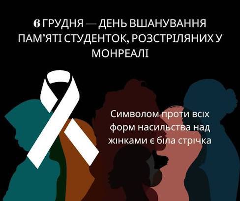 Щорічно 6 грудня ми вшановуємо пам’ять студенток, трагічно вбитих у Монреалі у 1989 році. Того дня в Політехнічній школі було скоєно жахливий напад, який забрав життя 14 молодих жінок — тих, хто будував своє майбутнє, навчався, мріяв і планував жити у світі рівності та поваги.