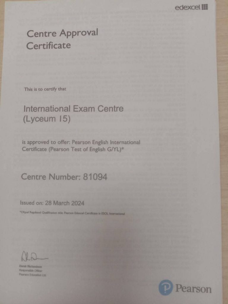 Викладачі ліцею успішно пройшли спеціалізоване навчання та отримали сертифікати міжнародного зразка, що підтверджують їхнє право здійснювати підготовку та проводити міжнародні іспити відповідно до стандартів Cambridge та Pearson.