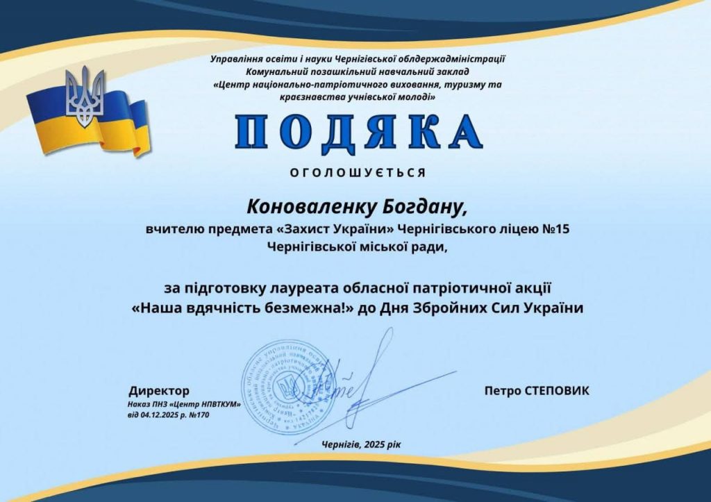 Окрема подяка та вітання Богдану Коноваленку – вчителю “Захист України” за креативність, натхнення та творчу роботу.